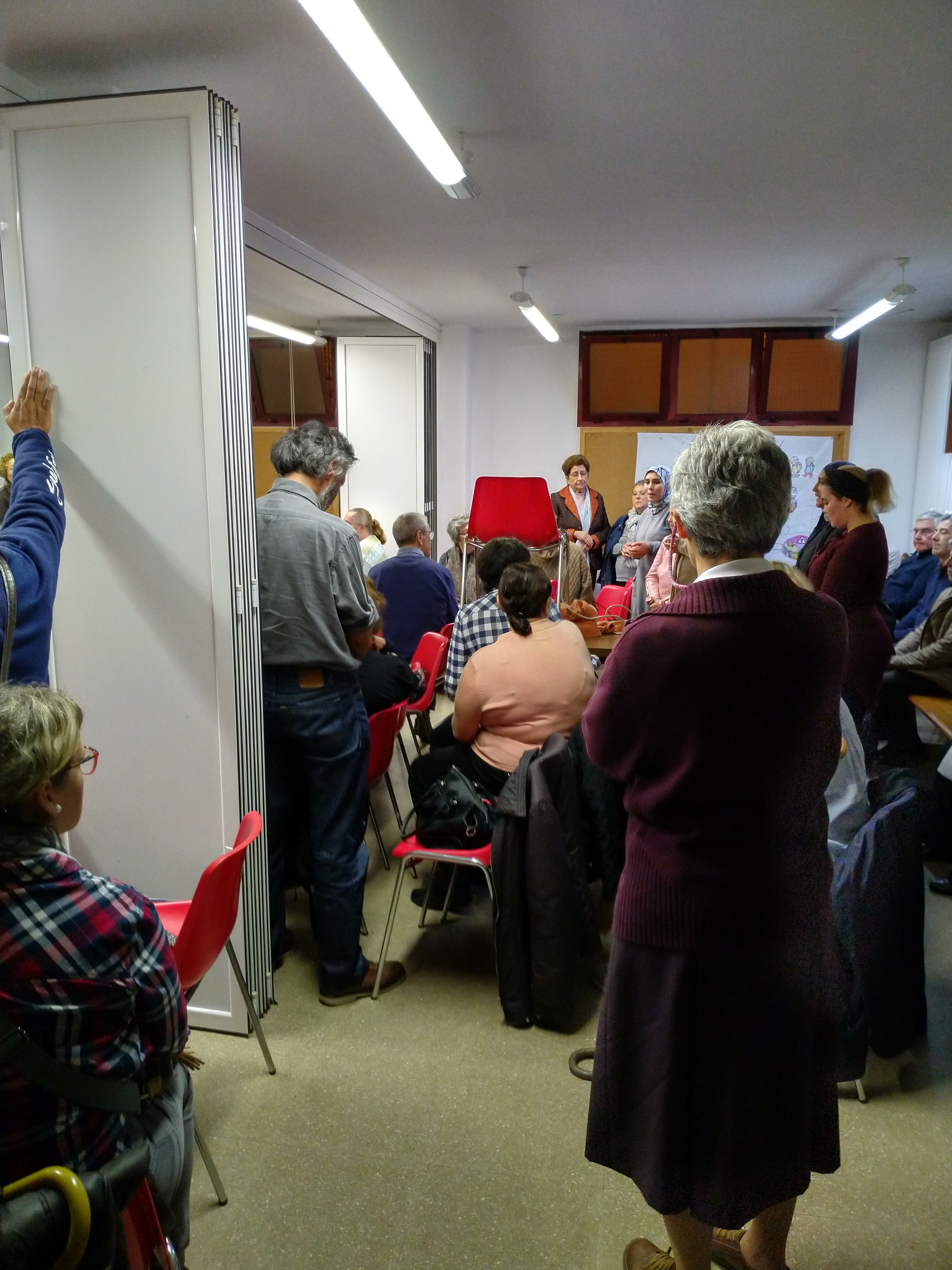 En esta jornada mundial de los pobres, la comunidad de El Palo se ha unido a la Iglesia universal en nuestra parroquia de San Juan de la Cruz dónde ha tenido lugar un encuentro con la comunidad parroquial y aquellos que asisten a los talleres de Cáritas. Este encuentro fraterno dio comienzo con una proyección recordando especialmente a todos aquellos que han perdido sus vidas en nuestras costas, seguido de oraciones de las diferentes confesiones religiosas. Nuestros hermanos musulmanes intervinieron con una de sus oraciones así como una familia siria que rezó el Padre nuestro en árabe. Concluimos este tiempo de oración uniendo nuestras manos con la oración del Padre Nuestro. Como todo encuentro no podía faltar el ágape fraterno con las especialidades gastronómicas que cada uno hizo de su país. Una vez más hicimos las experiencia de ser evangelizadas por los pobres.