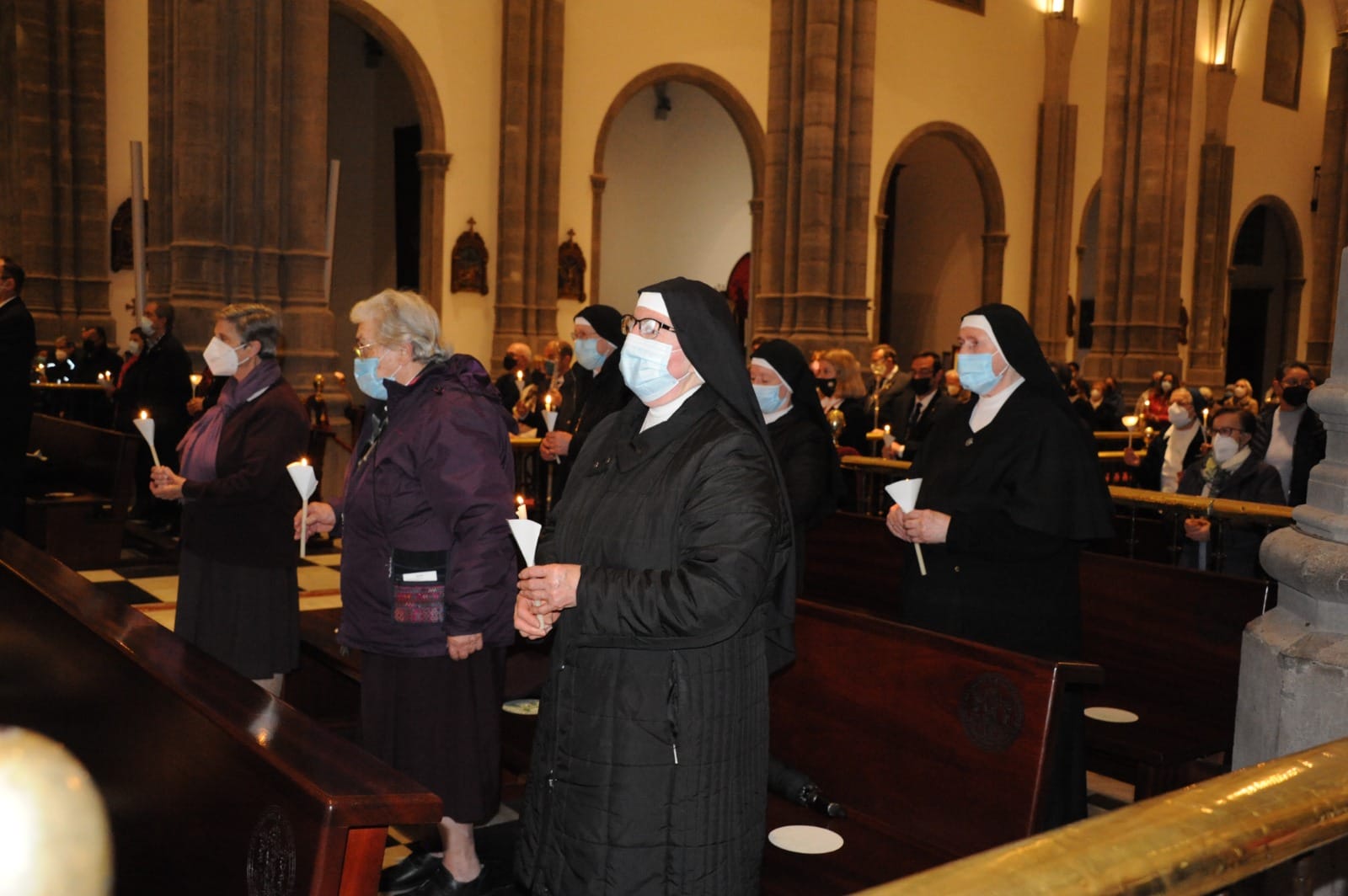Todos estos últimos años la celebración de la Vida Consagrada se aprovechaba para tener un encuentro fraternal de los Religiosos de la isla, Tenerife, en algún convento de Clausura: Garachico (Concepcionistas), Sta. Catalina (Dominicas) en La Laguna, Clarisas en la Laguna. En los últimos años nuestro encuentro se convirtió en un chocolate con churros en un ambiente fraternal y distendido. Pero este año 2022 solamente pudimos celebrar la Eucaristía a causa de la pandemia. Una celebración presidida por nuestro Obispo, Don Bernardo y un grupo de sacerdotes concelebrantes, además de un buen número de religiosos y de la Hermandad de Ntra. Sra. De la Candelaria ya que este día 2 de febrero se celebra la fiesta de Ntra. Sra. de la Candelaria, patrona de Canarias.