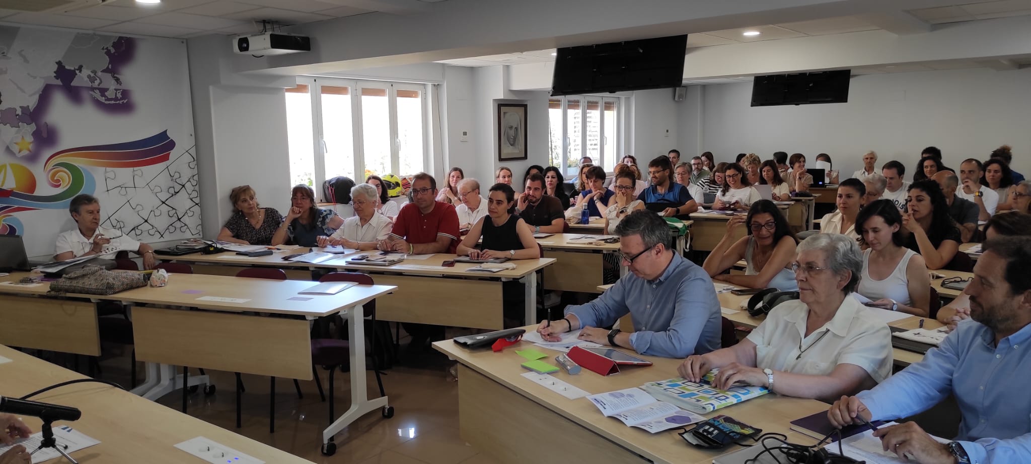 A continuación la subcomisión de Pastoral comienza explicando el trabajo de dicha subcomisión con los cambios en la subcomisión sucedidos este año. Se comenzó el curso organizando la convivencia de profesores nuevos en Riofrío, algo muy valorado por los participantes porque se crea un muy buen ambiente. A continuación se pone en marcha el concurso del lema Asunción. Además elaboraron la agenda del curso que viene, y realizaron la canción y el vídeo del lema del año que viene. Otro tema que llevaron a cabo fue el “Movimiento Asunción”, con las actividades de este movimiento se han trabajado varias líneas, el trabajo comunitario y la interioridad. También reconocen el trabajo de los equipos de los colegios para llevar adelante el “Espacio Adora” en Secundaria.