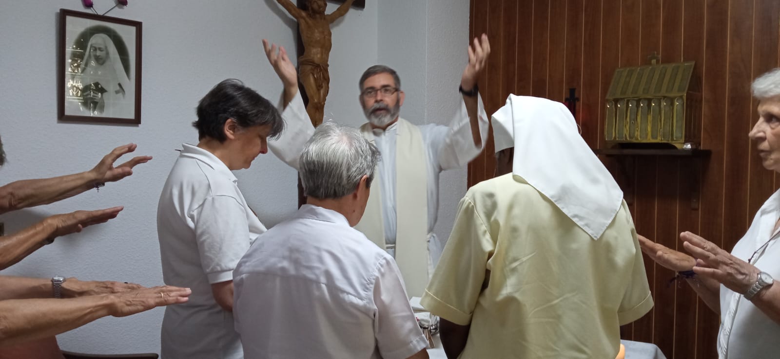 La Eucaristía, en el piso de la comunidad, presidida por un padre carmelita; la lectura nos hizo tomar de nuevo conciencia de que si no hay amor nada vale la pena; necesitamos pedir amor desde lo más profundo del corazón. Una celebración eucarística llena de símbolos: la bendición de las tres hermanas, pidiendo al señor el tomar conciencia de ser verdad y buscar siempre su voluntad. Alguna de las hermanas recordaba el “abandonarse” que el celebrante de Cuestablanca, les señalaba en la Eucaristía de despedida. También Ana Mary recibió el envío, ya que esa tarde se marchaba a Ruanda.