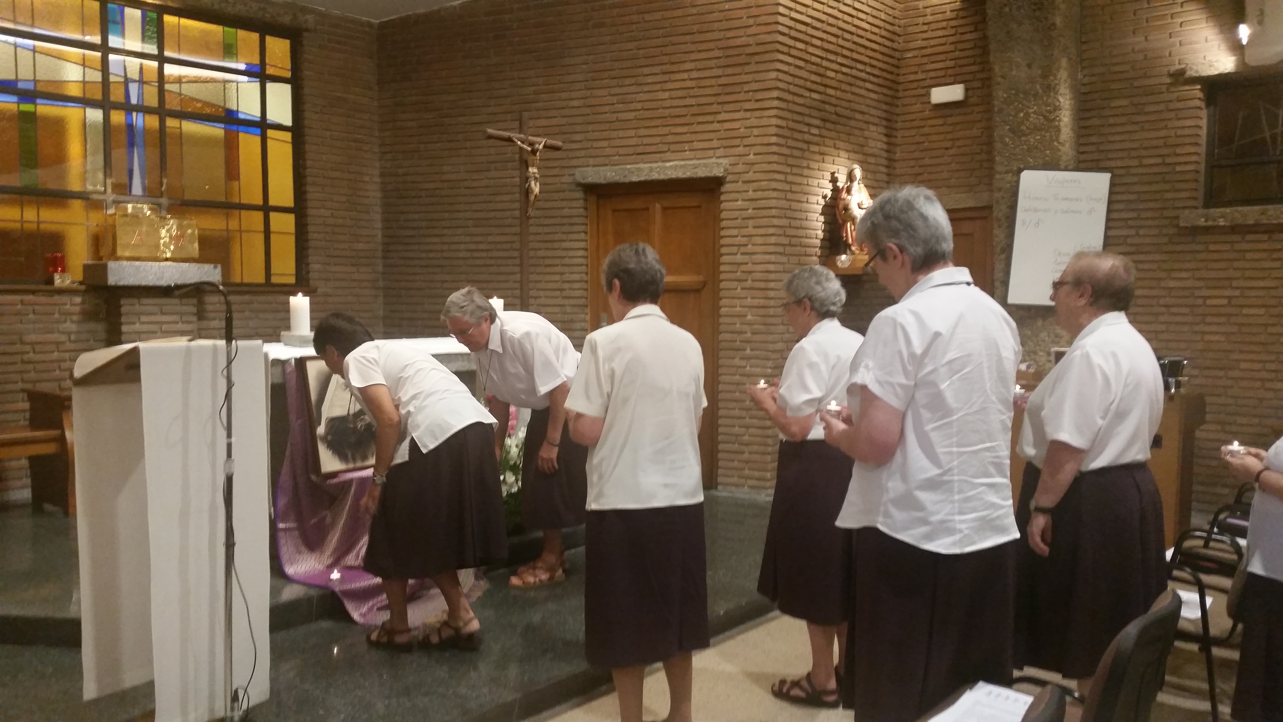 del tiempo ordinario ha tenido lugar, en la casa provincial, una pequeña ceremonia en la cual hemos dado gracias a Dios por Cristina Ocaña, y la misión desarrollada durante estos seis años al frente de la provincia. También por el consejo que la ha acompañado en esta tarea, formado por Cecilia Manrique, Marisabel Ruiz Benítez de Lugo y Cristina Massó. También hemos pedido por la nueva provincial, Cecilia Manrique y las hermanas de su consejo, María José García, Asun Miguel y Ana Pilar García. El Espíritu las acompañe en su misión de animación de la provincia y en la puesta en marcha de las llamadas del Capítulo General que acabamos de terminar. Que movidas por el Espíritu seamos capaces de arriesgarnos en las fronteras al servicio de la vida. El amor nunca dice basta.