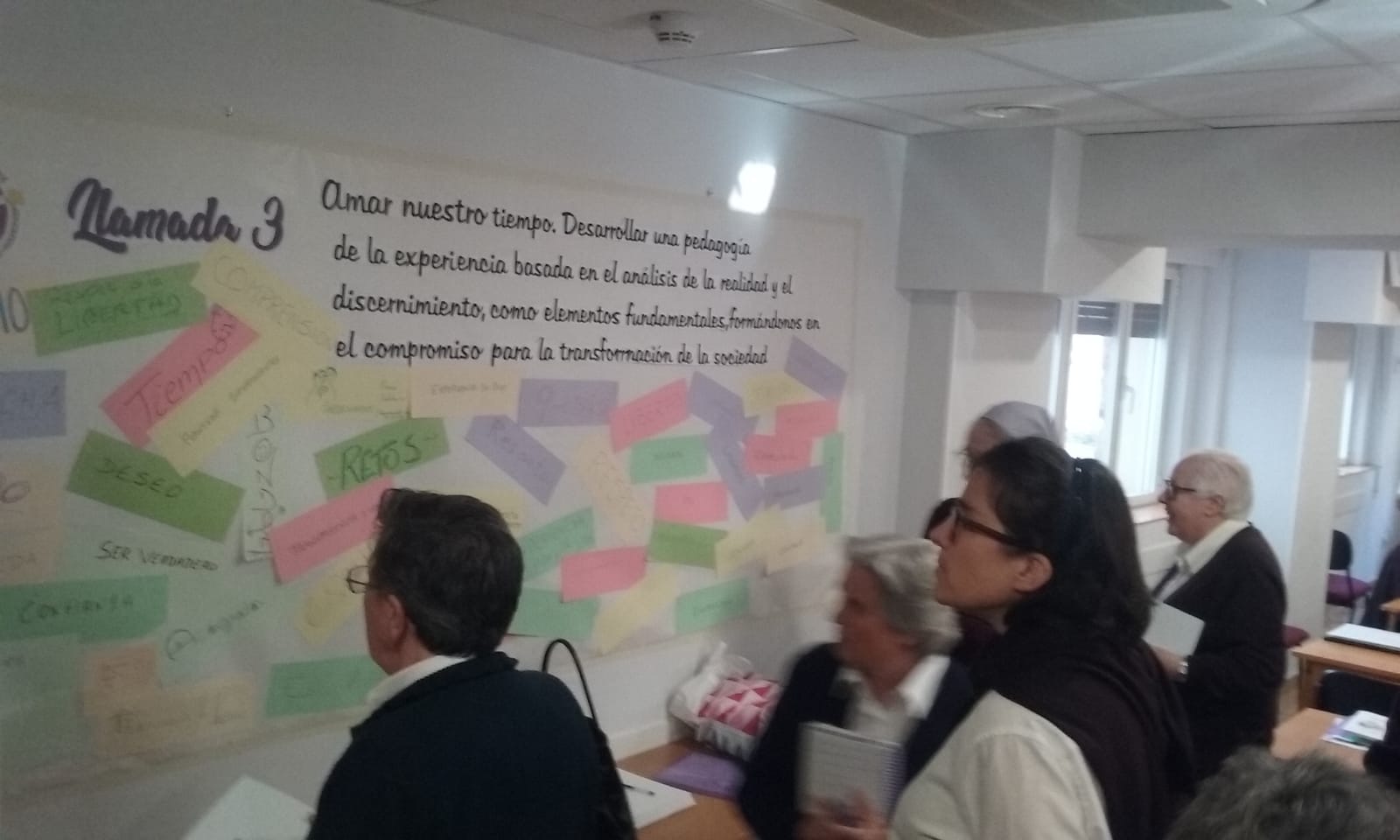 La mañana del segundo día ha sido de intenso trabajo de grupo y de asamblea. Ana Pilar, Camino y José Luis, delegados al capítulo que estuvieron en el Congreso de Manila, prepararon cinco dinámicas de trabajo para poder profundizar y actualizar para nuestra provincia las llamadas surgidas de este encuentro internacional. Fue un trabajo muy enriquecedor que sigue dando luz al proceso capitular.