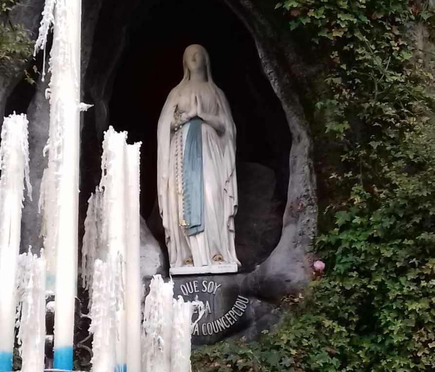 La tarde ha sido muy intensa: presentación, juegos de conocimiento, y para finalizar una oración para conocer la historia de Santa Bernardita. Terminamos con una procesión de velas hasta la gruta de la Virgen...sencillamente impresionante.