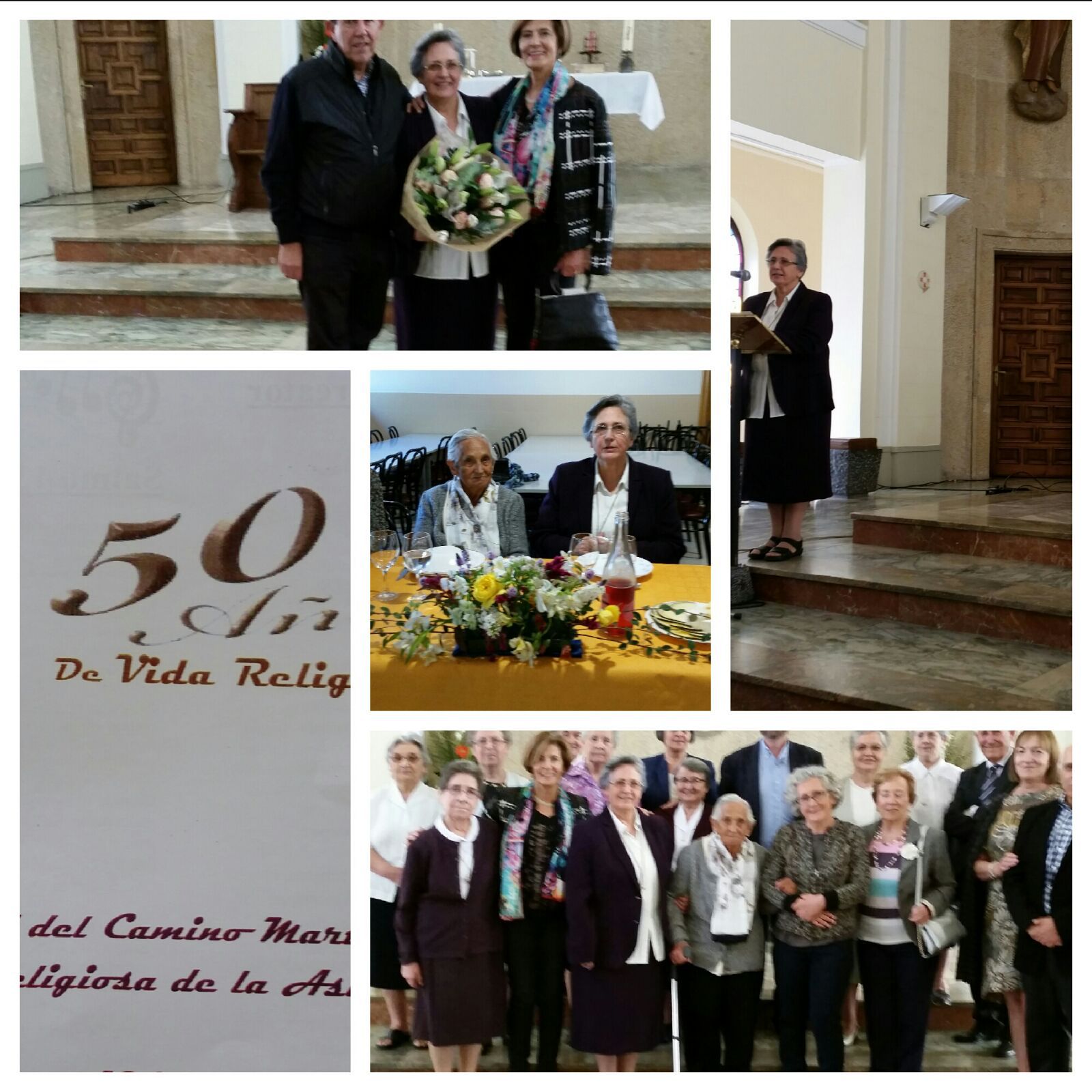 En un día tan señalado para toda la congregación y unidas a nuestras Hermanas, que en Auteuil celebraban la Eucaristía de la fusión, hemos celebrado en León los 50 años de Vida religiosa en la Asunción de Camino Martínez. Su Palabra "Para mi vivir es Cristo" refleja una vida entregada a Jesús y a nuestra misión de educación a lo largo de 50 años y en lugares tan diversos como Guatemala, Nicaragua, el Salvador y España. Nuestra acción de gracias se expresaba en la alegría de toda su familia y Comunidad.