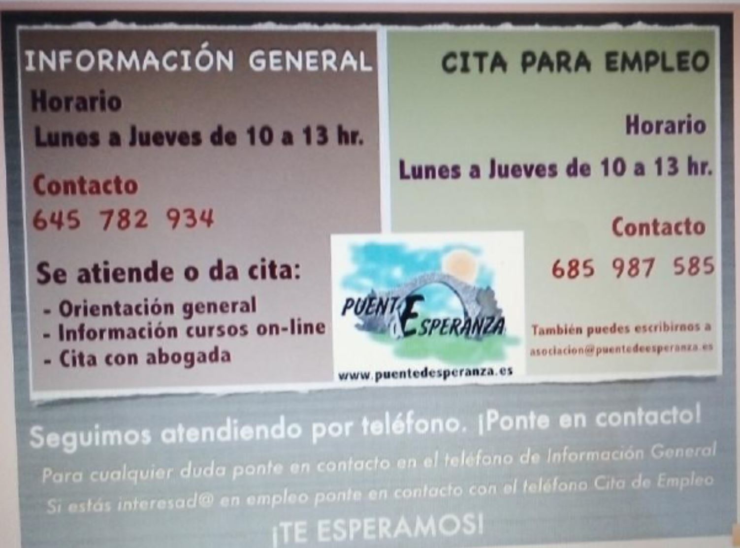 El 11 de marzo Puente de Esperanza bajaba su persiana, al hacerlo, colgábamos un cartel diciendo que volveríamos el día 26. Pasarán algunos “26 “ más antes que podamos volver a subir la persiana y acoger, presencialmente a nuestros usuarios. Pero aún con la persiana baja, hemos iniciado la tarea con fuerza y Puente de Esperanza intenta aportar algo de ella a nuestros usuarios.