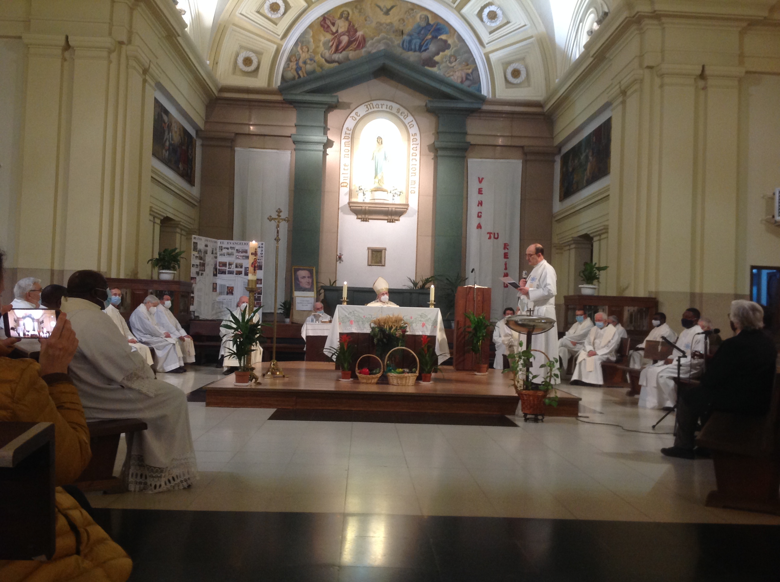 La Eucaristía fue presidida por D. Carlos Osoro, Cardenal de Madrid, y concelebrada por numerosos sacerdotes. En la homilía, D. Carlos agradeció a Dios la presencia de este Carisma al servicio de la Iglesia y en especial en este barrio de Vallecas a donde ellos llegaron al finalizar la guerra siendo portadores del paz y fraternidad, animando una Comunidad cristiana que supo ser testigo de Jesús, el buen Pastor reparando las fuerzas de este pueblo y cuidando la Fe de este barrio con un gran sentido de sinodalidad. Su compromiso con los pobres, su trabajo con los jóvenes y su pastoral entre los alejados han sido a lo largo de estos años un don de Dios para la Iglesia de Madrid.