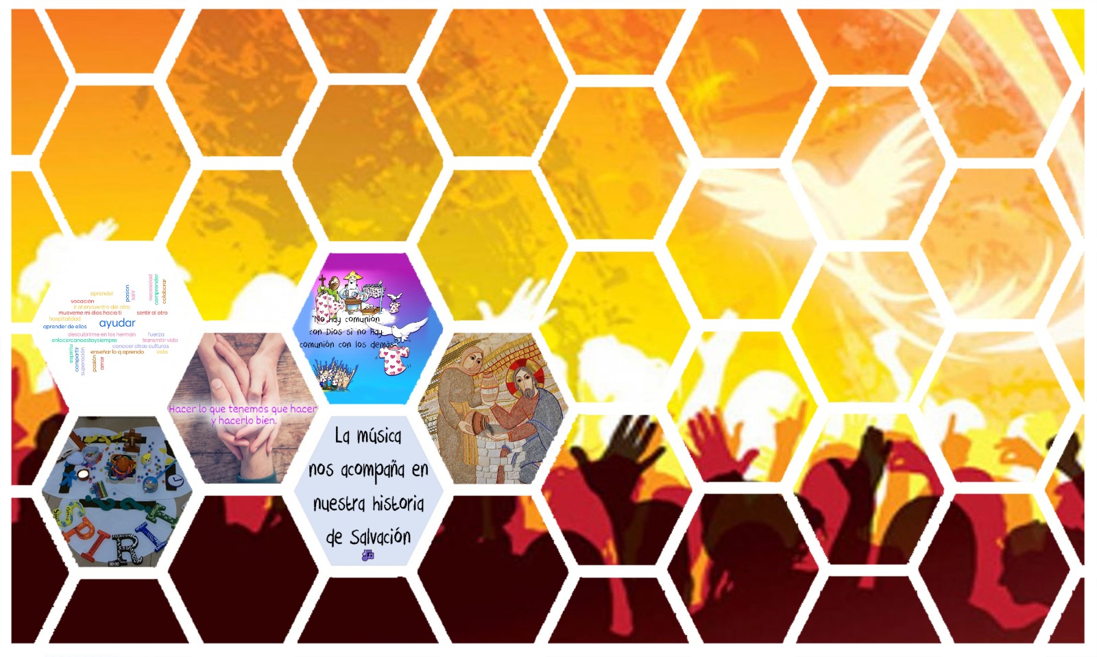 Estamos en este mundo, en este momento histórico y ahí también está Dios. En estos tiempos, somos todavía más conscientes de la importancia de Dios y del otro, sabemos que nos necesitamos. Nuestras vidas forman parte de un bello mosaico… en el mosaico de la vida, estamos colocados en distintos lugares, con distintas edades, colores, tamaños… A veces, cuando miramos nuestra vida como algo aislado, desde nuestro individualismo, sentimos que somos muy poco, que aportamos poco, pero si nos fijamos en el mosaico completo, cada pieza es importante, tiene su protagonismo… si falta una, todo el conjunto queda deslucido, pierde valor.