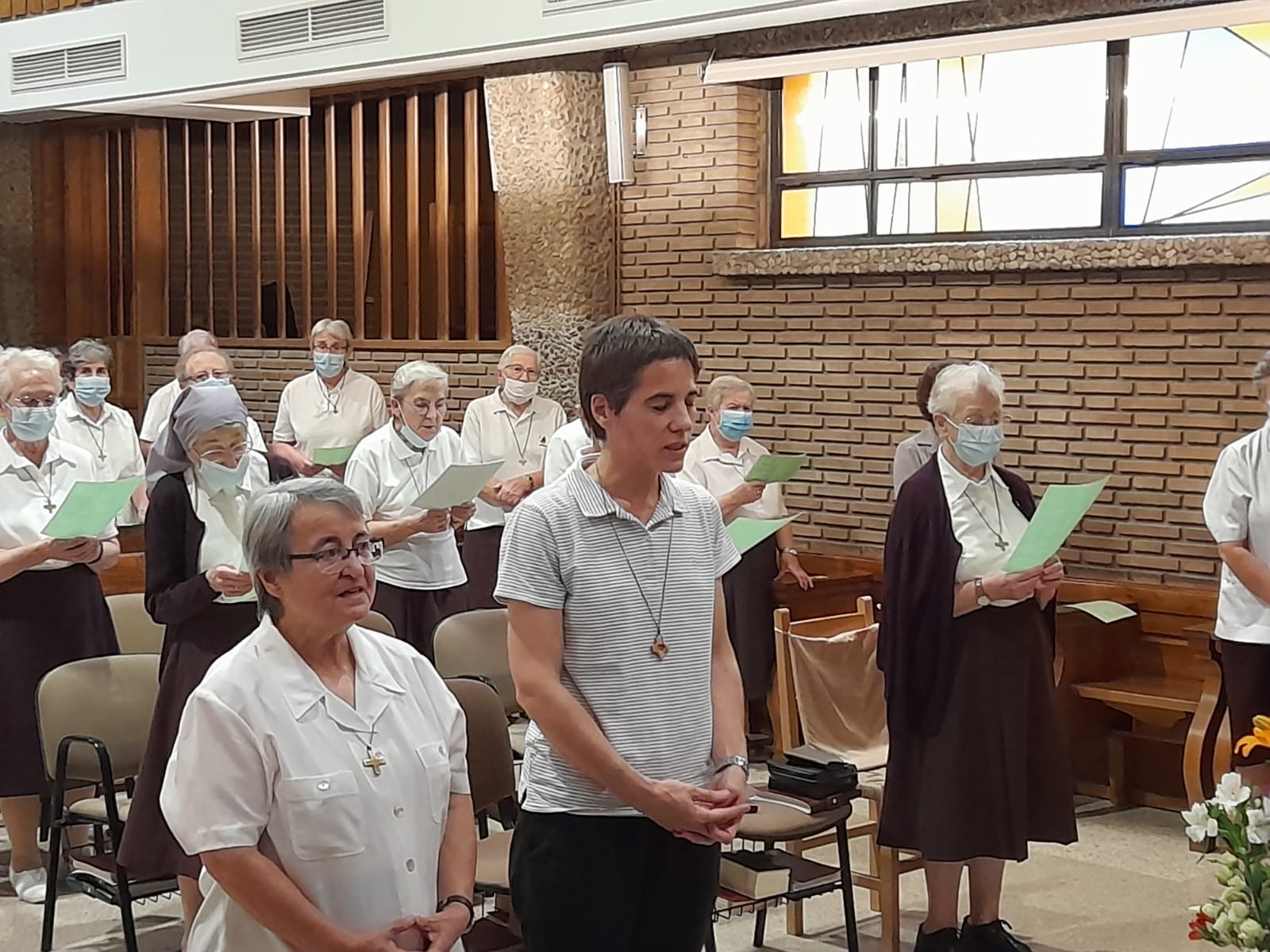 El sábado 11 de septiembre durante la celebración de las Vísperas, Miren Fernández Urraitzi recibió la cruz de postulante. Con la toma de la cruz expresó públicamente, en presencia de su comunidad de Olivos y de hermanas de toda la Provincia reunidas en Capítulo Provincial, su de deseo de conocer y amar a Jesucristo en la Asunción.