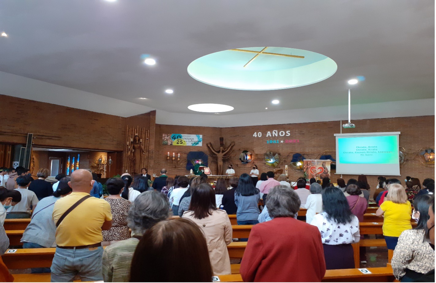 La Iglesia está con su capacidad máxima según las restricciones del Covid y las misas dominicales son muy festivas con un coro juvenil. La liturgia se apoya en gran medida en las celebraciones filipinas.