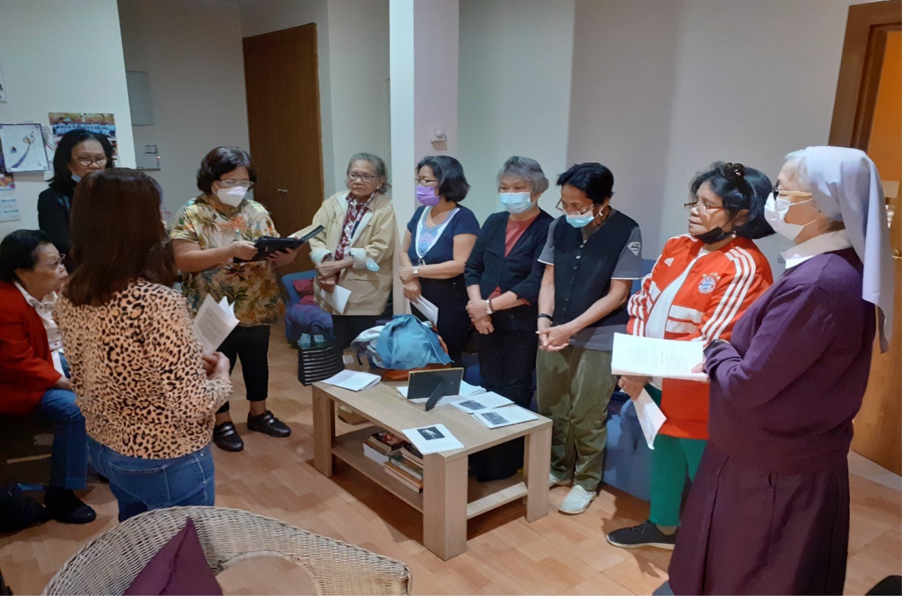 A partir de las misas dominicales y otras actividades, lo que más me llamó la atención, son los grupos de oración, compuestos en su mayoría por mujeres que viven cerca unas de otras. Ellas se reúnen en una de sus casas, los sábados por la tarde para una oración y un encuentro. El nueve de octubre me invitaron a una de estas reuniones. Nos reunimos doce mujeres en un piso de la Glorieta de Cuatro Caminos y comenzamos rezando por sus familiares en Filipinas que murieron de Covid. Después leímos el Evangelio dominical y compartimos nuestras experiencias de fe y de vida. Comprobé como esta sencilla reunión de oración brinda apoyo emocional y afirma la fe de estas mujeres. Cada una de ellas también contribuyó con una pequeña cantidad para ayudar a un miembro cuya familia sufrió un revés económico debido al Covid, su generosidad y solidaridad me dieron esperanza en el futuro.