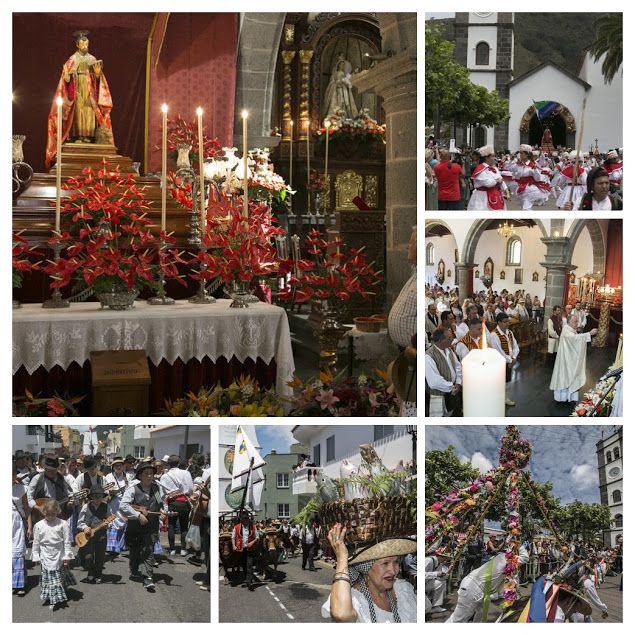 En Tegueste hay una tradición popular y religiosa en honor de su Patrono San Marcos. Es una Romería en las que desfilan las Carretas con el ganado y están decoradas en paneles que confeccionan las propias familias. Pegadas con granos cada panel representando figuras y motivos del pueblo, son verdaderas obras de arte. Acompañan al Santo los Bailarines del Hierro y las agrupaciones folklóricas de los distintos Municipio. Cabe destacar que durante estos meses se celebran estas Romerías en distintos pueblos, comenzando en Tegueste, donde la participación aquí es masiva. Como comprenderéis hemos participado en todo.