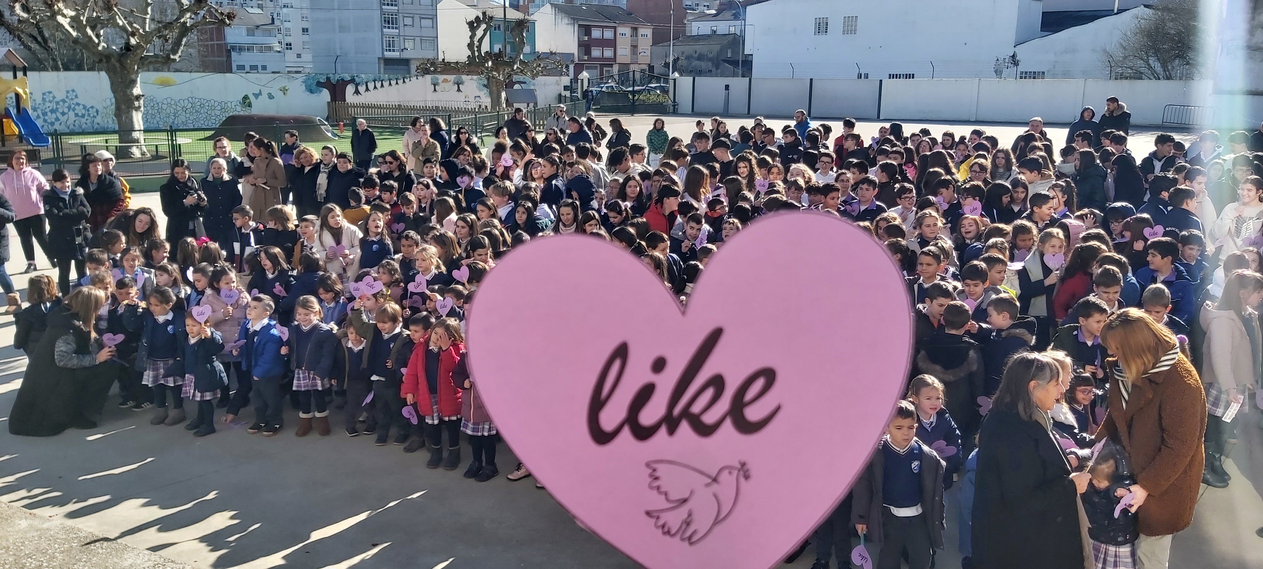 Hoy celebramos en el cole el día de la Paz, bajo el lema “I like paz”. Fue un acto muy emotivo en el que participamos toda la Comunidad Educativa, alumnos, profesores, PAS, padres… concentrándonos en el exterior del cole para realizar el acto. Primero, recitamos en alto unas frases muy bonitas de distintos personajes célebres alusivas a La Paz, mientras todos los miembros del cole, levantábamos un Like cada vez que se escuchaba una de ellas. Desde el grupo Asuncion familias,Mergúllate, se lanzó una invitación a todas las familias para participar con nosotros en la celebración. Asistieron numerosos papás y participaron activamente, se les invitó a leer con nosotros una parte del Manifiesto de la paz. Continuamos la celebración cantando la canción de Axel, llamada “Celebra la vida”, realizando todos juntos una pequeña coreografía para bailar la canción. Para finalizar, el Director del Colegio, en nombre de toda la Comunidad Educativa, leyó una emotiva oración. Resultó un acto precioso en el que como Comunidad Educativa disfrutamos mucho juntos.