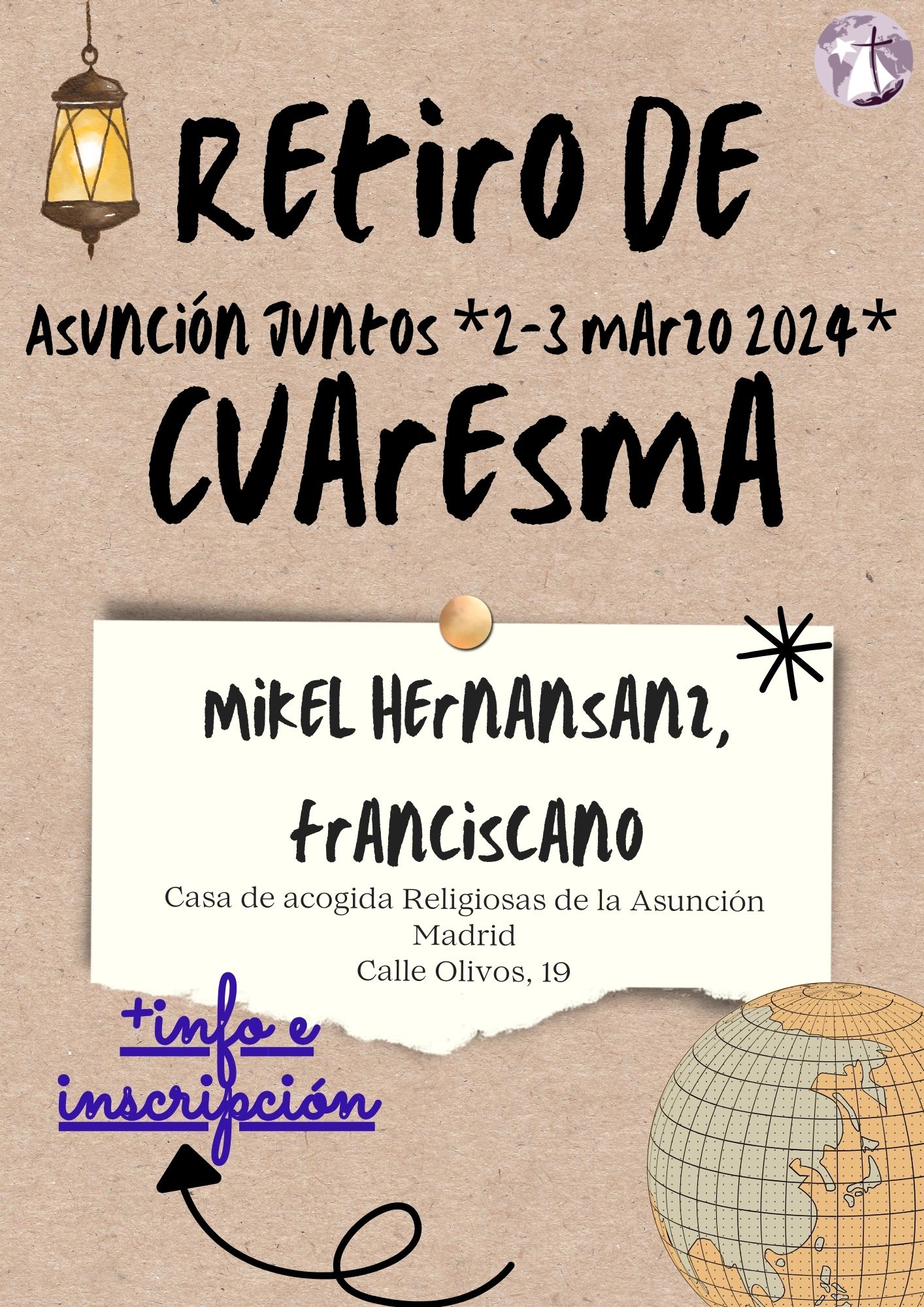 Próximo retiro de Cuaresma de Asunción Juntos. Formulario de inscripción: https://forms.office.com/e/i8yNN7qzpF?origin=lprLink