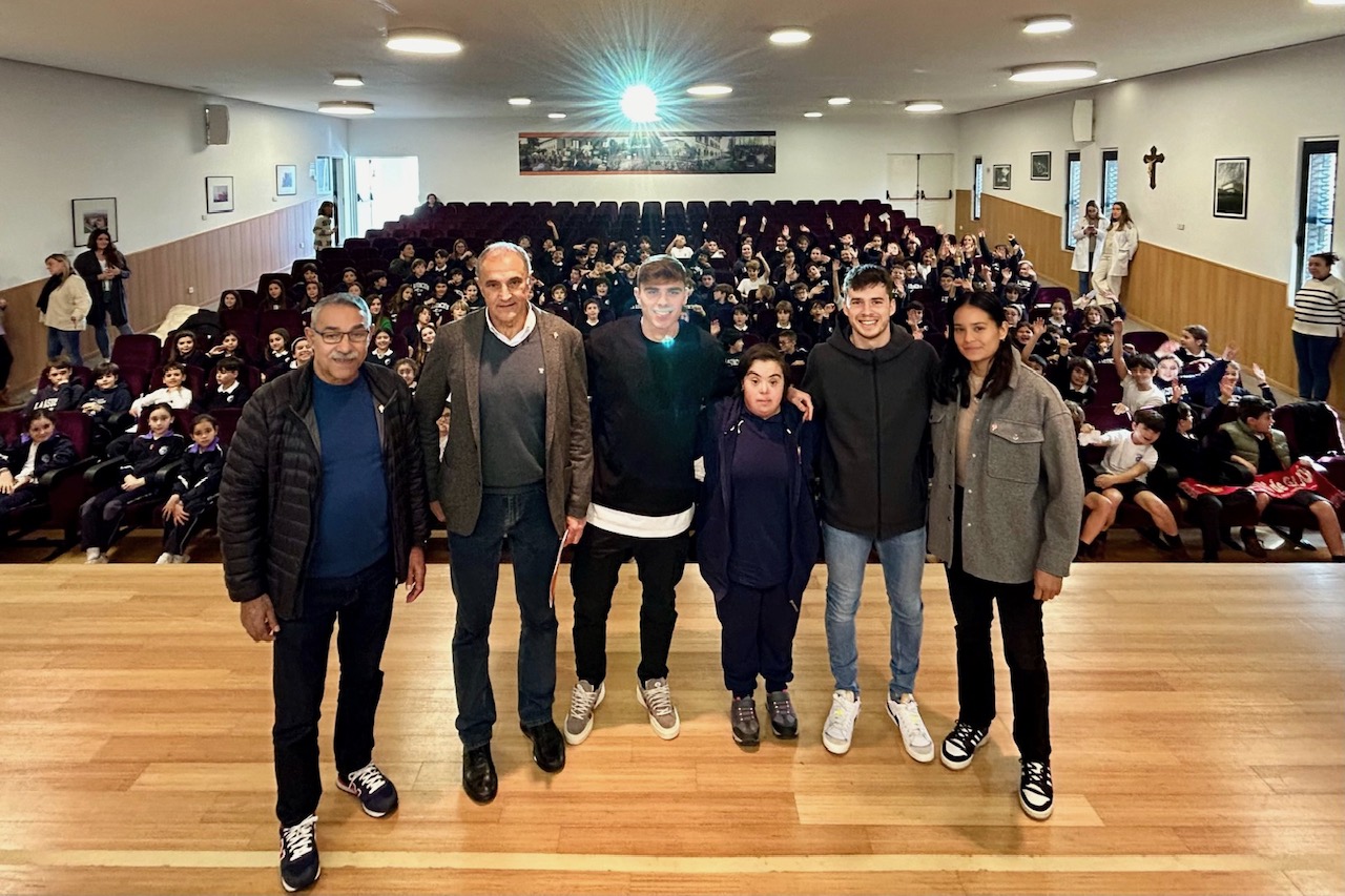 Por la tarde nos visitó una representación del Real Sporting de Gijón de la que formaban parte dos jugadores de la primera plantilla de Segunda División que son, además, antiguos alumnos de La Asunción: Pablo García y Guille Rosas. En la reunión con alumnos de 5° y 6° de Primaria les explicaron cómo ellos viven cada día esos valores de paz que les ha inculcado el deporte y todo lo que les ha aportado a su vida.