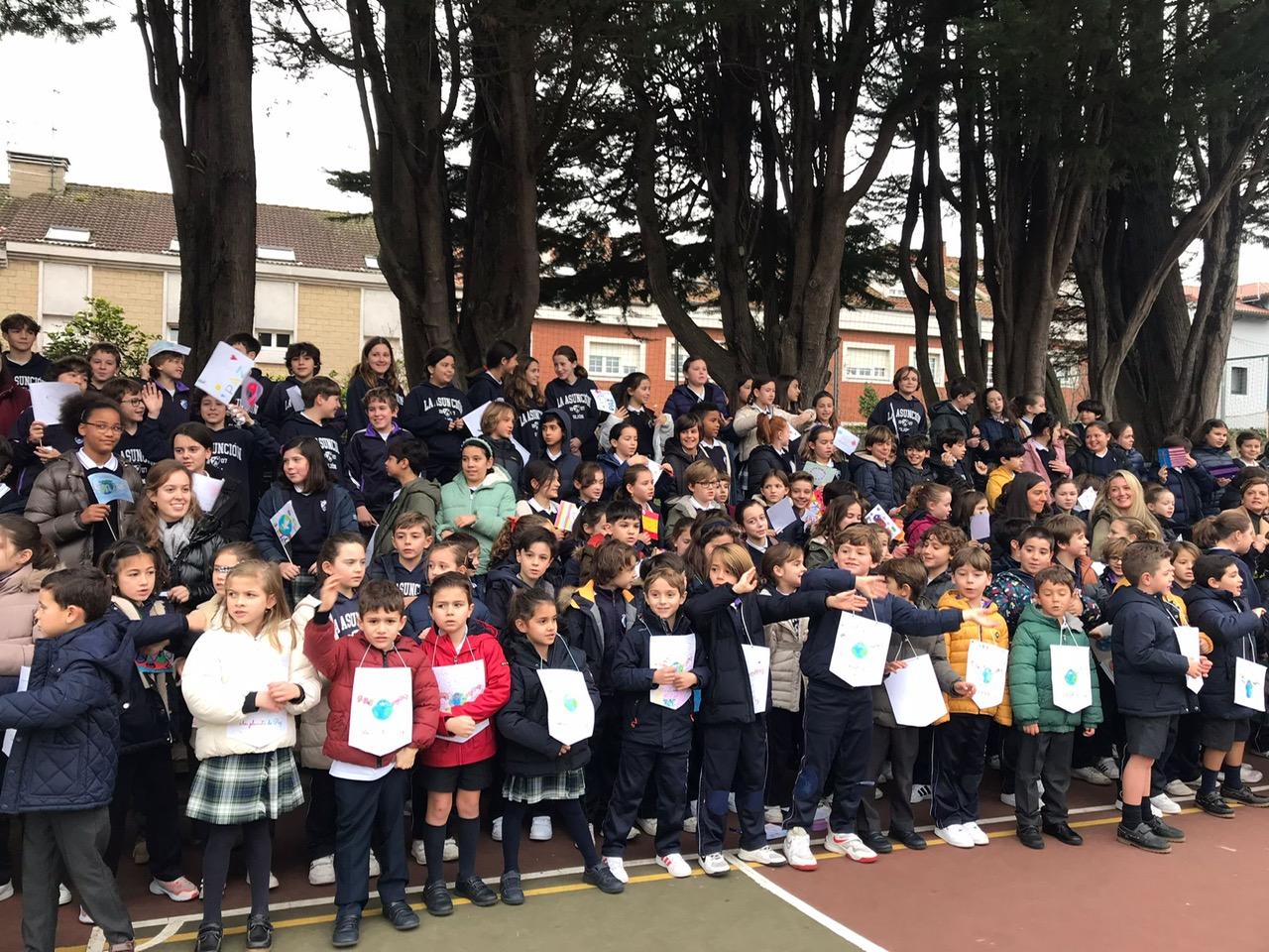 El martes 30 de enero celebramos el Día de La Paz. Todos los años desde las tutorías se hace una labor de concienciación que comienza en la oración de la mañana y que ve sus frutos en los actos de ese día en el que alumnos y profesores comparten en el patio del colegio unos minutos en los que el recuerdo a quienes sufren situaciones de violencia está muy presente.