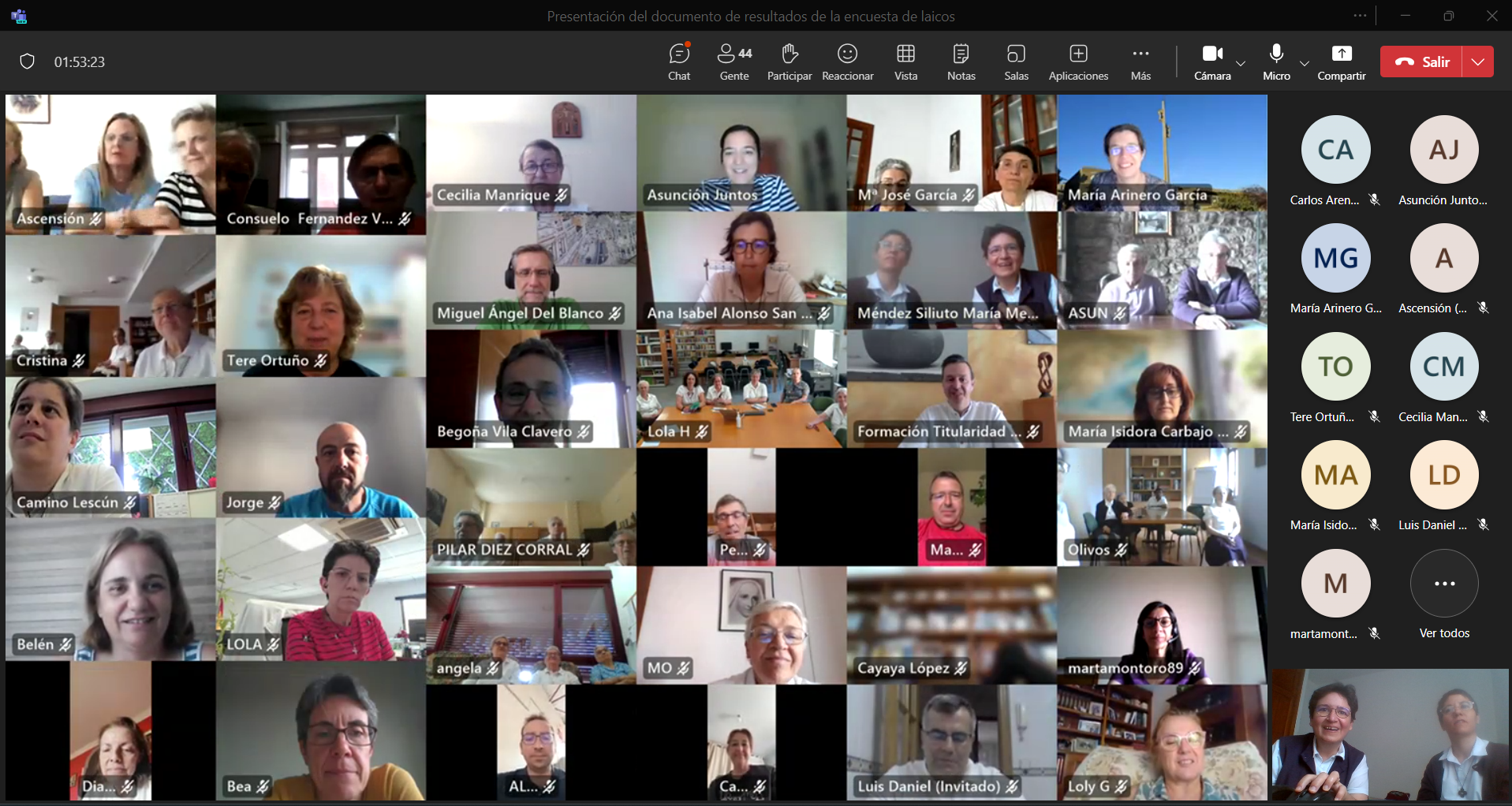 Como parte del camino sinodal de preparación del Capítulo General 2024, el pasado sábado 8 de junio laicos y hermanas de nuestra provincia nos reunimos para conocer el análisis de los resultados de la encuesta enviada a miembros de Asunción Juntos de las catorce provincias que forman la Congregación.