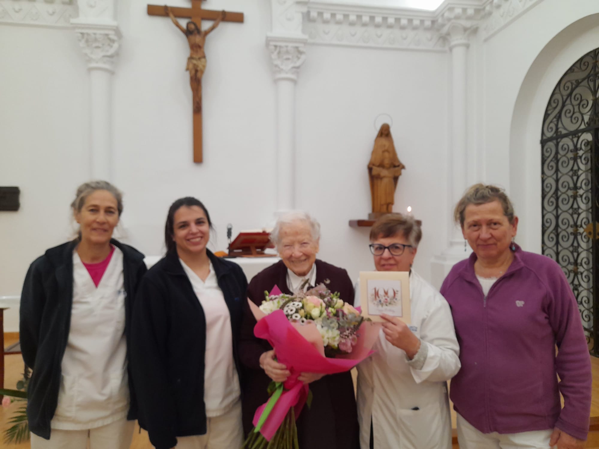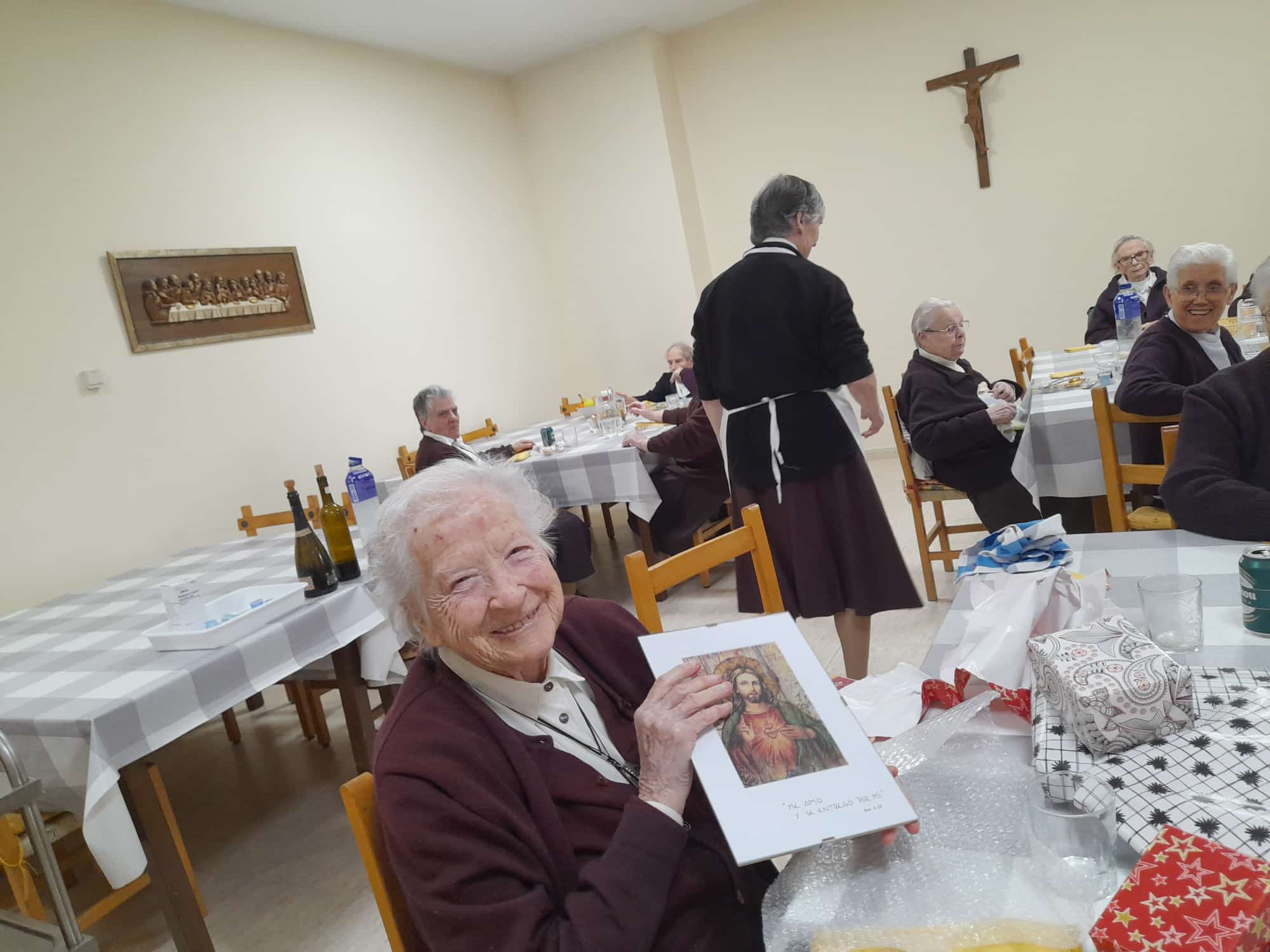 Empezamos a festejarla ese día coincidiendo que estaba entre nosotras Lola, nuestra superiora provincial, que había venido para la visita canónica de la comunidad. En la cena le ofrecimos varios regalos, y esa misma tarde llegaron sus sobrinos y sobrinas de diferentes partes de España y hasta uno de Australia, estuvieron alojados en las casitas. La familia estaba feliz de reencontrarse con motivo de tan bonita ocasión.
