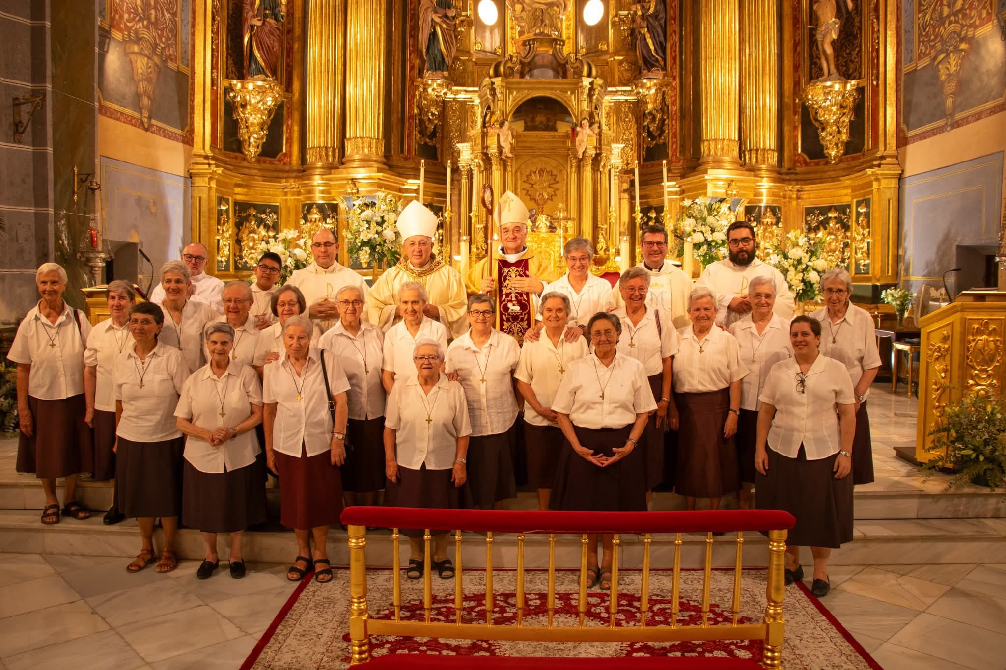 En la tarde una solemne Eucaristía presidida por Don Antonio Gómez Cantero, nuestro Obispo, concelebrada y cantada por el coro parroquial. ¡La Iglesia estaba llena! A continuación, un precioso musical en el gran teatro de la villa que a través de canciones, fotos y testimonios se pudo captar la vida de las hermanas durante estos 50 años. Terminamos el intenso día compartiendo un ágape.