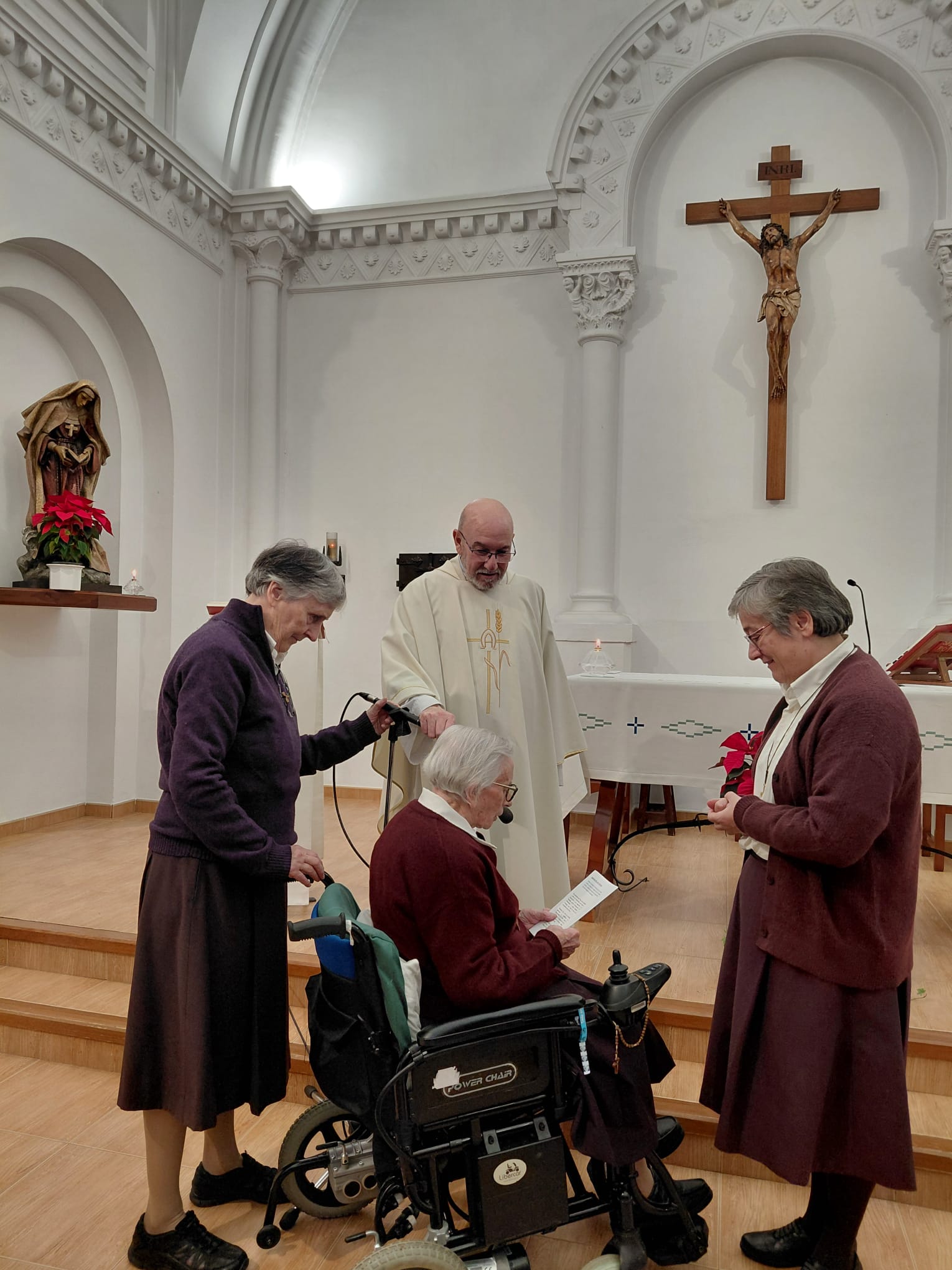 La comunidad de Riofrío vivió un día lleno de alegría y gratitud al celebrar los 75 años de vida consagrada de nuestra hermana Oliva, el pasado 6 de diciembre. Celebramos la Eucaristía en nuestra capilla a las 12,30 con el sacerdote Fernando Mateo que hizo una homilía muy bonita, recogiendo su vida.