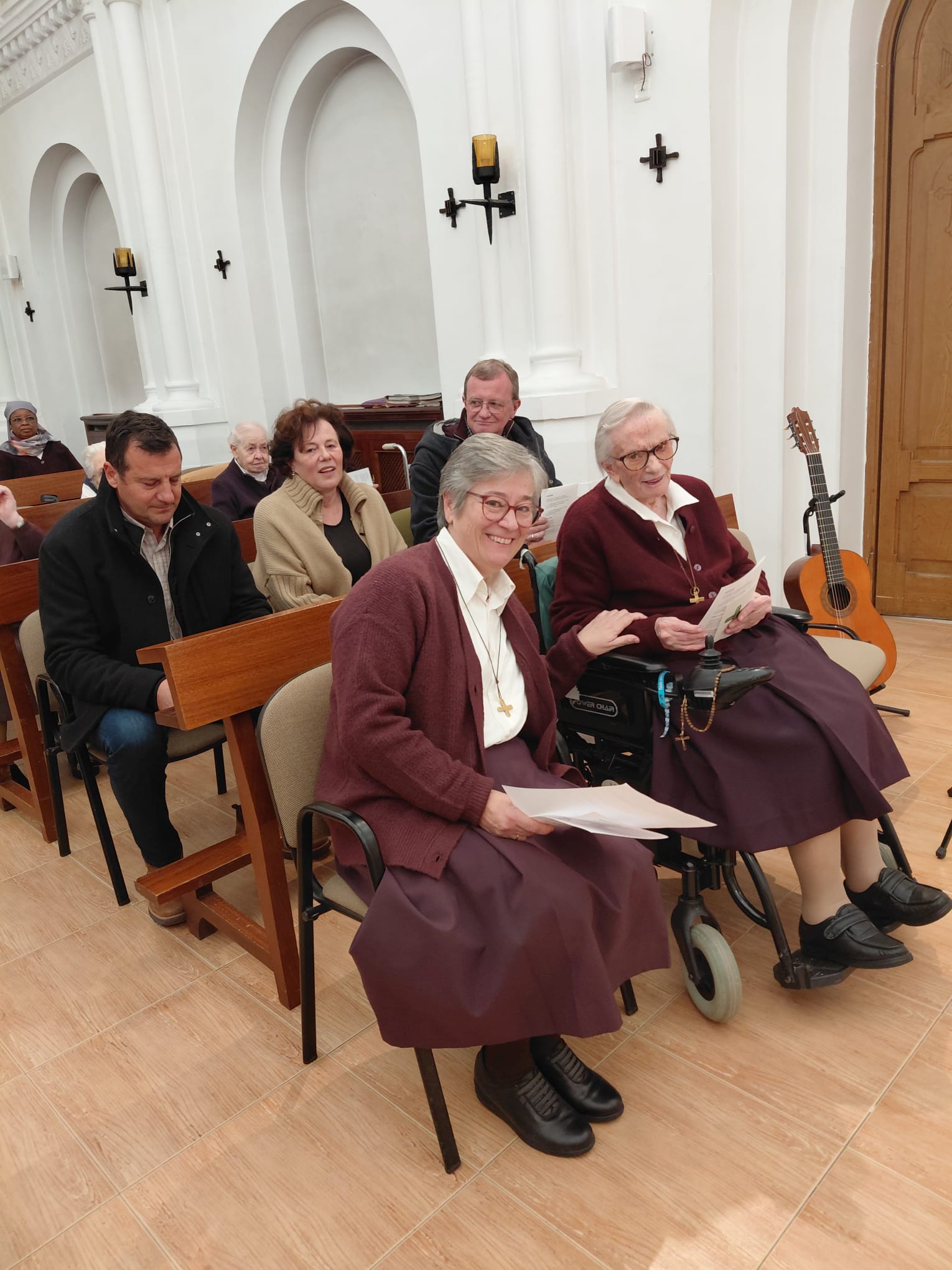 Lola nuestra provincial estaba con nosotras porque habíamos tenido su visita. Vinieron varias hermanas de Collado, Santa Isabel y Olivos y amigos de aquí que la conocen. La víspera habían llegado sus sobrinos desde Asturias, fue una alegría para ella compartida con toda la comunidad.