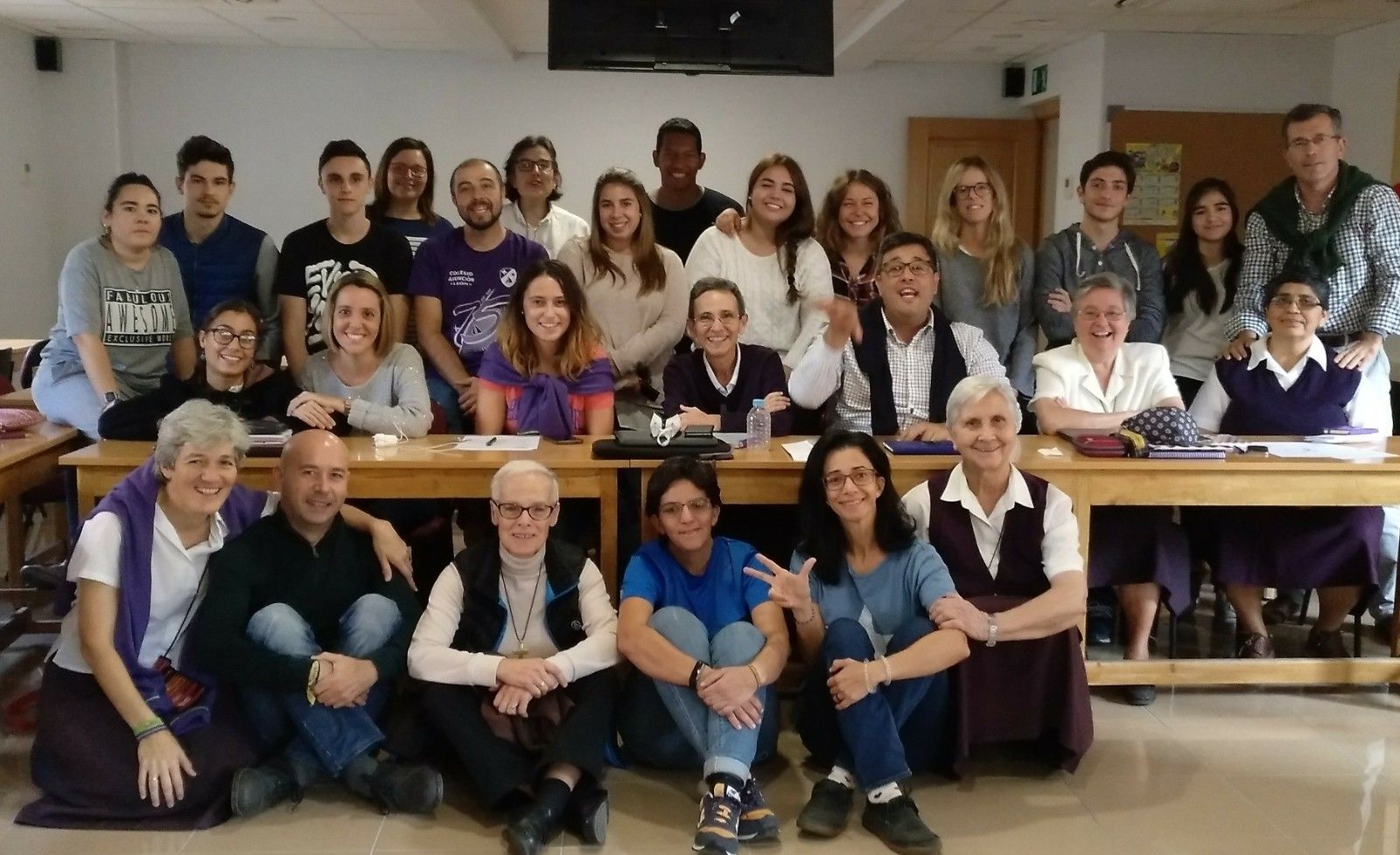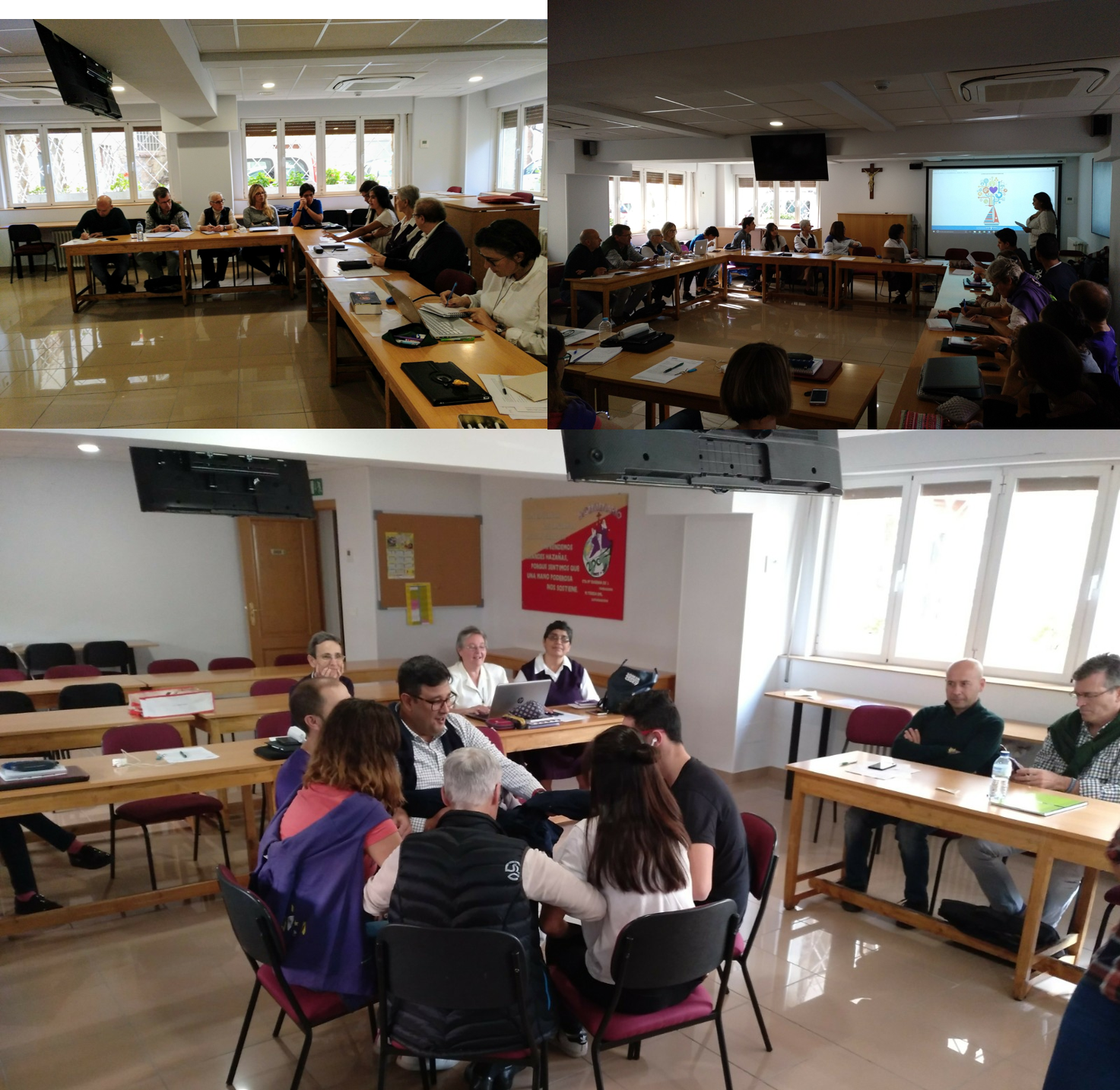 Como tema de formación hemos trabajado el tema de la Iglesia en el carisma de la Asunción. Se ha profundizado en lo que significó la Iglesia en la vida de Santa María Eugenia. Había tres temas: la Iglesia cuerpo místico de Cristo, Espíritu de familia que se vive en comunidad y la misión que nos encomienda la Iglesia. Cada uno de estos temas fue trabajado en equipos. La puesta en común resultó de lo más creativa; un teatro y dos imágenes sugestivas y muy bien diseñadas sirvieron para explicar al resto de la asamblea sus conclusiones.